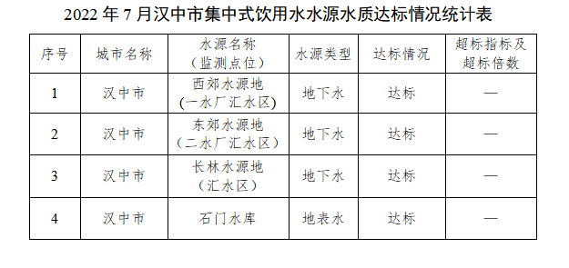 2022年7月,365bet官网平台网址_国内365bet登录网址_bt365网址监测了市中心城区东郊、西郊、长林、石门水库4个在用集中式生活饮用水水源地水质,市中心城区东郊、西郊、长林水源地为地下水,石门水库水源地为地表水。