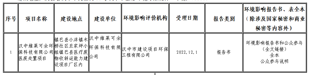 根据建设项目环境影响评价审批程序的有关规定,我局受理1个建设项目环境影响评价文件。现将受理情况予以公示,公示期为2022年12月1日--2022年12月14日(10个工作日)。公众可以信函、传真、电子邮件等方式提交书面意见。