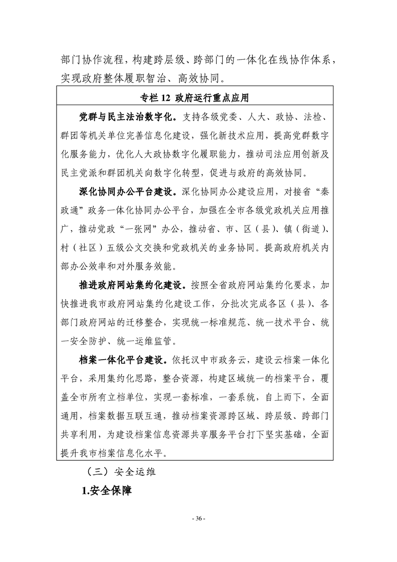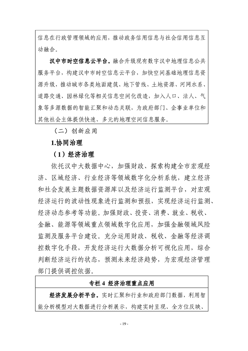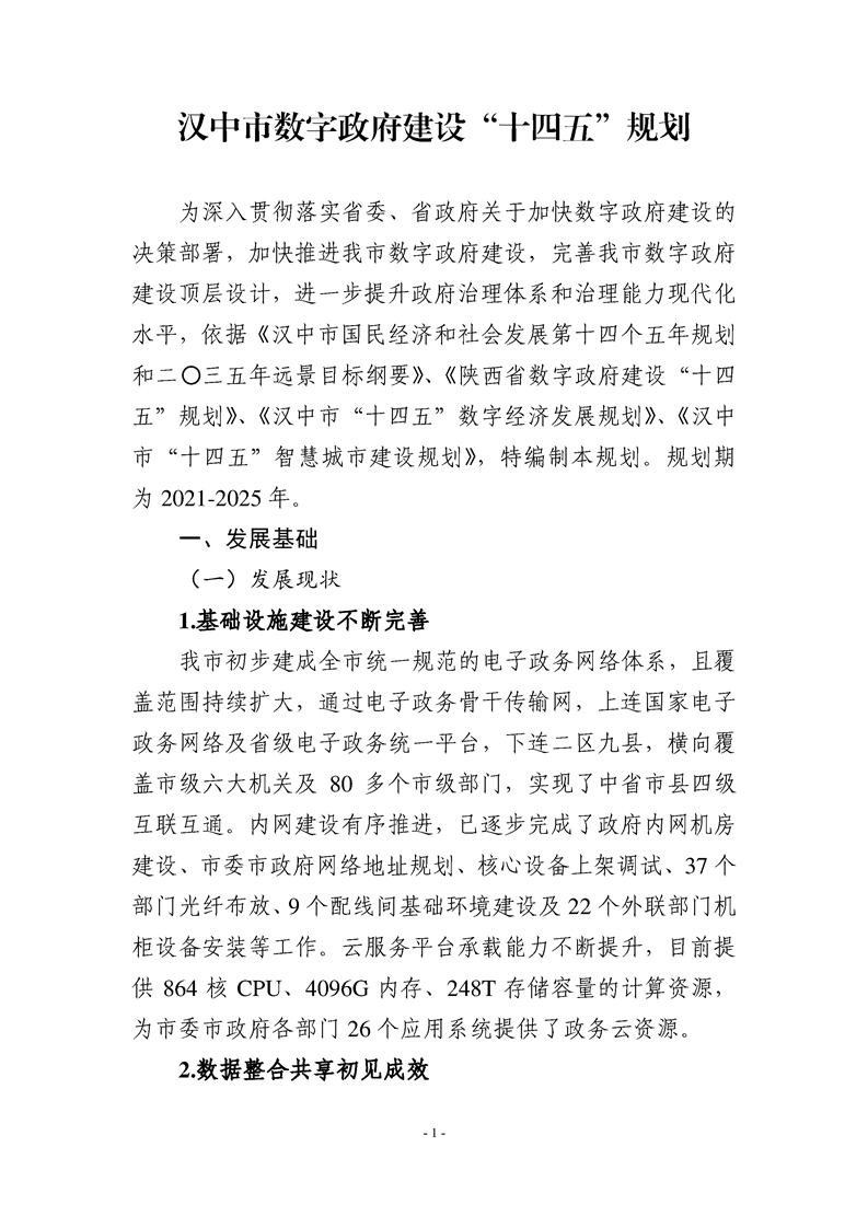 (一)《规划》提出充分利用新一代信息技术,建设汉中物联网管理服务平台、人工智能赋能平台、时空信息云平台以及智慧城市基础信息平台,为全市数字政府建设提供先进的技术支撑。