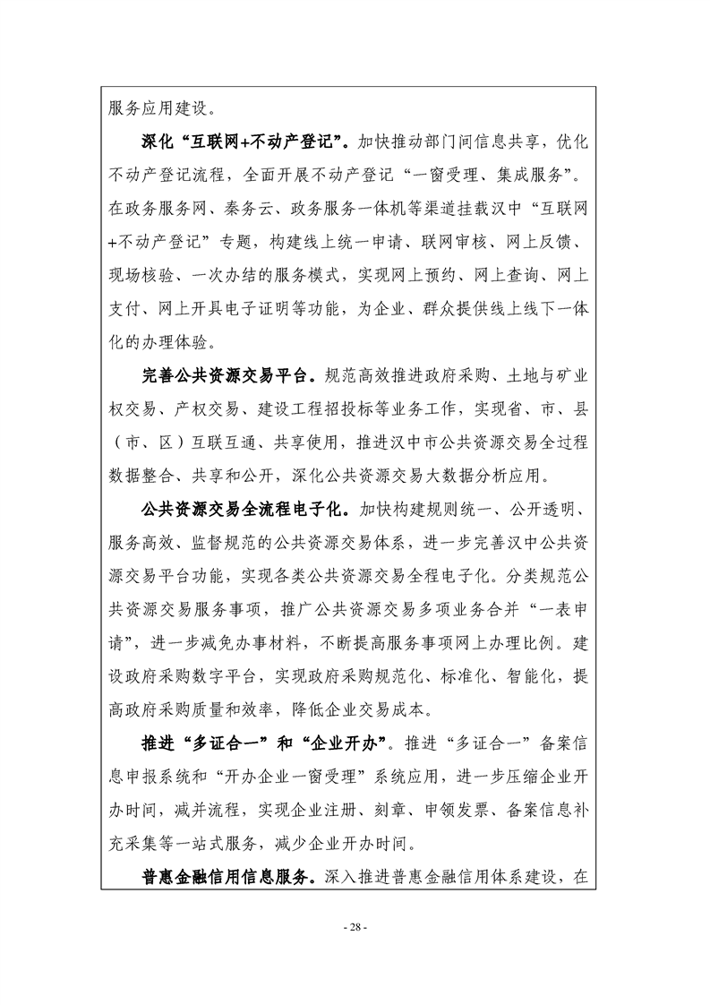 1.第8页“政务服务能力全面提升”部分修改意见:建议将“实现政务服务网上可办率100%,政务服务事项‘最多跑一次’实现率不低于95%,政务服务领域信息孤岛实现100%打通”修改为:实现政务服务网上可办率95%,政务服务事项“最多跑一次”实现率不低于90%,市县政务服务领域信息孤岛实现100%打通。 4.企业综合服务平台涉及内容很多,涵盖企业各方面的信息和服务,如惠企政策落实、创业服务、科技服务、人力资源、法律服务、财税服务、产业供应链供求、投融资服务及政务审批服务。市审批局涉及的企业开办只是企业综合服务平台的组成部分,此项任务由市审批局牵头实施不妥。 5.“公共资源交易平台”中建议将“建成横向与市级部门交易系统互联,纵向与省级公共资源交易平台以及各县区贯通的一体化平台体系”修改为“强化市级行业部门监管,进一步健全公共资源交易领域监管权力和责任清单,夯实监管主体责任,建成规范、高效的市级公共资源交易平台。” |